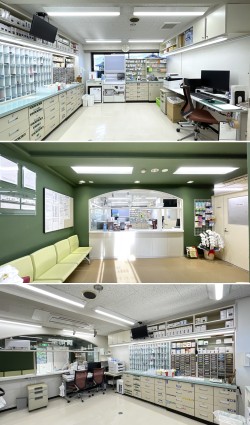 薬局 調剤室内にて約1800種類の薬剤を備蓄しており、