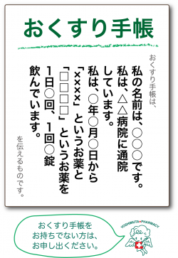 \\おくすり手帳は処方せんと一緒に出しましょう!//