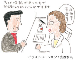 調剤の処方も含め、こうした薬に関するアドバイスを的確に行うには、その方の情報が欠かせません。体質、病歴、薬歴、副作用の有無など、多くの情報があればあるほど、より的確にアドバイスできます。