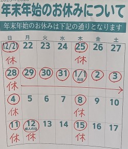 年末年始の営業時間のおしらせ (2025/12/22更新)