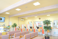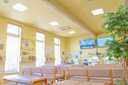 高い窓からふりそそぐ陽光によりゆったりした気分でお待ちいただけます。広くて、明るく、心地よい空間です。
