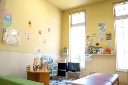 キッズコーナーには本、おもちゃ、小型テレビを設置しています。