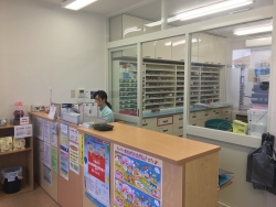 おくすりの説明とお渡しをするカウンターです。わからないことは、お気軽にご相談ください。お気をつけてお帰り下さい。