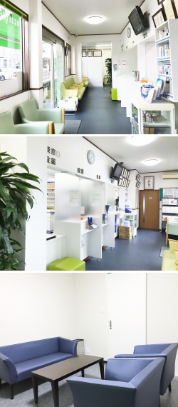 待合室・投薬窓口・相談室・相談ブースとなります。