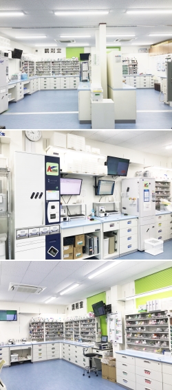 薬局 調剤室内にて約1800種類の薬剤を備蓄しており、