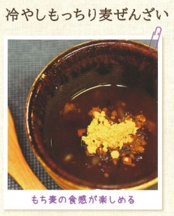 夏は冷やして、冬は温かいおぜんざいで。ゆで加減や余熱により、まったく違う食感になります。出来上がり後、そのままお鍋に入れておくと、もっちり麦がふやけてやわらかくもちもちとした食感に変わります。