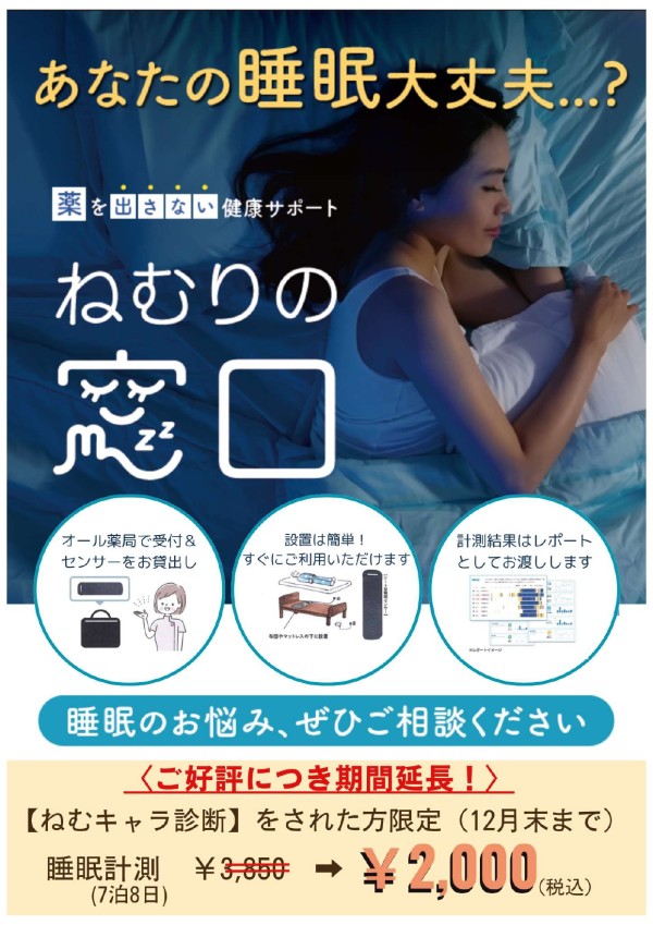 また薬局では睡眠センサーの貸し出しも随時行っております。