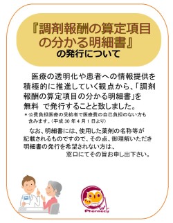 「調剤報酬の算定項目の分かる明細書」を無料*で発行することと致しました。