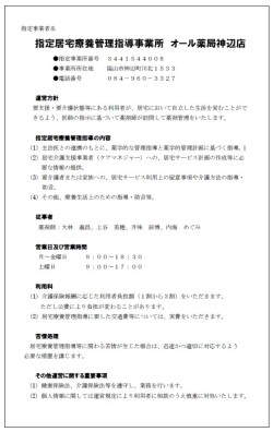 ・当薬局は、処方箋による医師の指示があるときは、在宅で療養されている