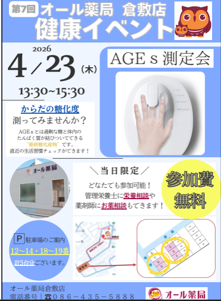 今回の健康イベントでは、去年4月のに行ったAGEs測定会をします。