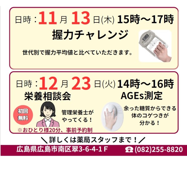 握力を測定を行い、年代比較し体力測定を実施しています。