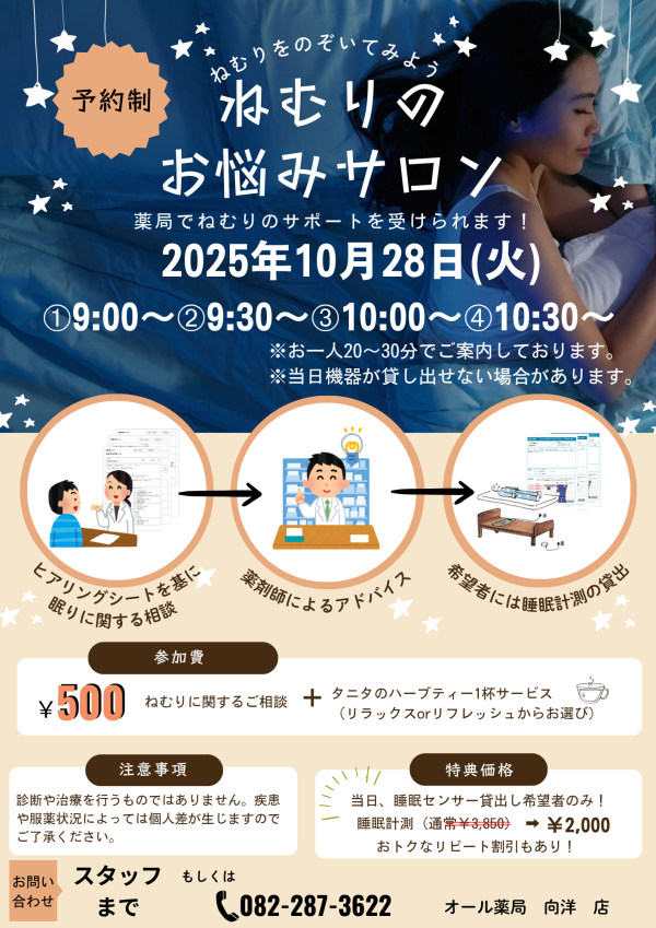 【10/28(火)】ねむりのお悩みサロンを開催いたします。