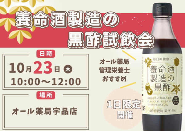 【10/23(木)】「養命酒製造の黒酢」試飲会を開催いたします。