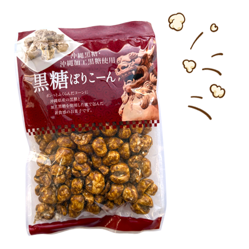 第21弾は【黒糖ぽりこーん】です。大粒のポン菓子に沖縄産の黒糖を使用した黒糖蜜をからめたお菓子です。