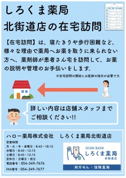個人在宅や施設への在宅訪問を実施中です、詳しくは店舗スタッフまでお伺いください。