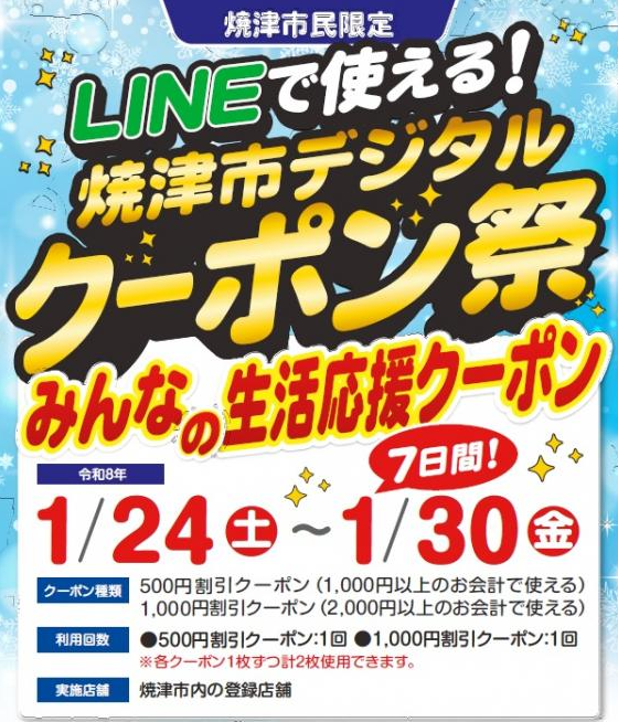 「焼津市デジタルクーポン祭り」開催中です。