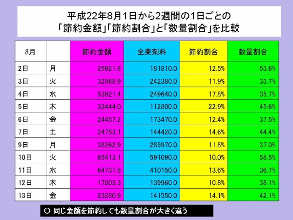 ・同じ金額を節約しても数量%は5%以上違う日がある。