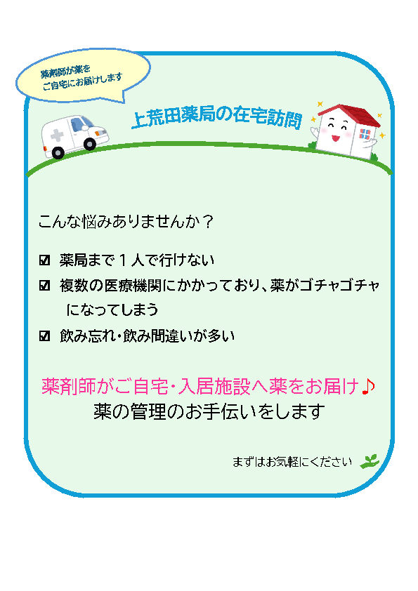 薬剤師がご自宅や入居施設に訪問することで解決できるかもしれません。