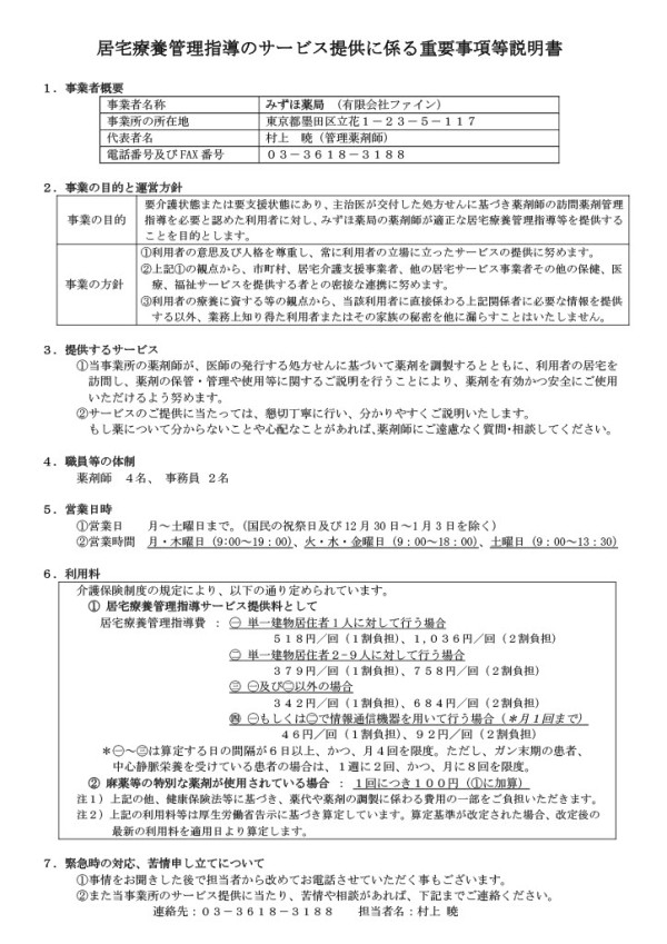 関東信越厚生局 東京都在薬指定 190313号 みずほ薬局