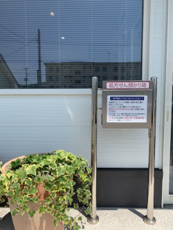 薬局の玄関わきに「処方箋お預かりポスト」を置いています。薬局が閉まっている時間帯でも処方箋の受付にご利用いただけます。