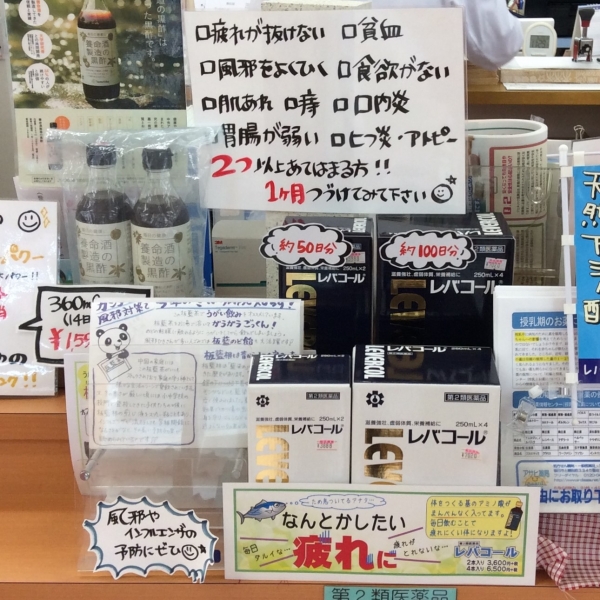 アサヒ薬局の初の試み、レバコールロイヤルS試飲キャンペーンが無事終了しました。お客様の反応がとても心配でしたが、そんな心配をよそに予定の100本はあっという間になくなりました。ほっとひと安心です。今後も皆さまに楽しんでいただけるようなイベントをしていきますね!