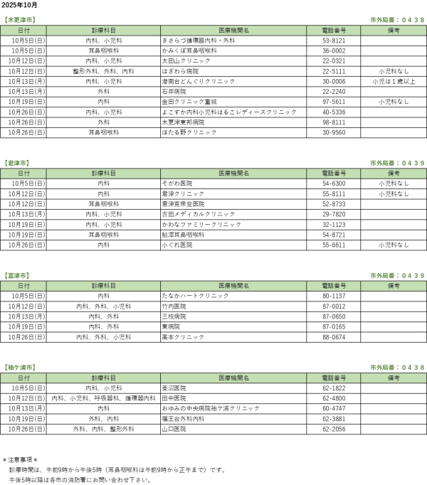 11月の休日当番医 (2025/10/29更新)