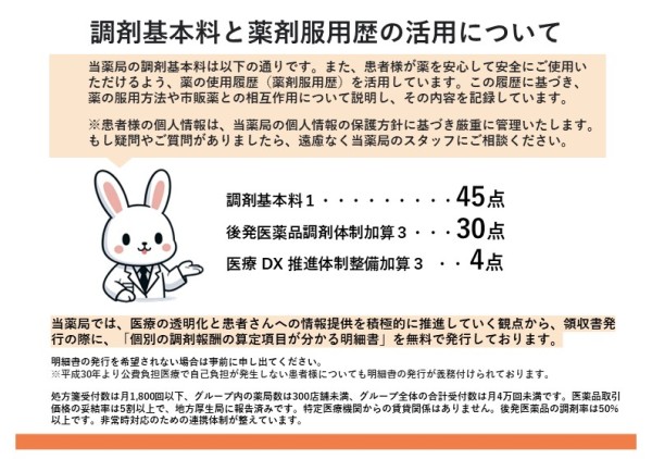 ただし「かかりつけ薬剤師指導料」という負担が発生しますのでご注意ください。(実際には60円または100円程度、負担が増えることになります。)