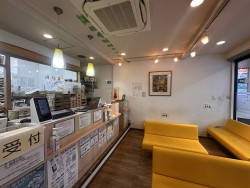 店内に入ると、右壁に大きなひまわりの絵が皆さまを明るくお迎えしております。