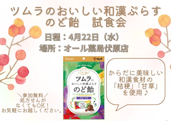 【4月】ツムラのおいしい和漢ぷらすのど飴 試食会を開催