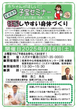 坂東市にて「第18回 妊活支援市民講座(妊活漢方セミナー)」を開催します。
