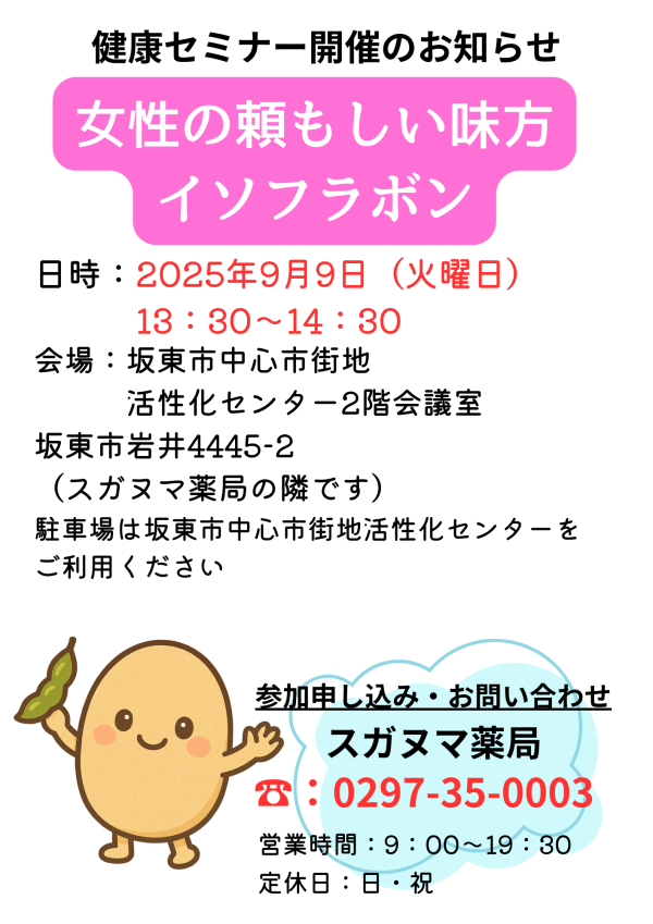 【参加無料】女性の健康と美容を支える「イソフラボン」セミナー開催|坂東市 9月9日