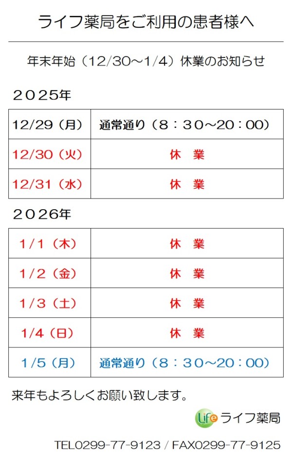 なお、下記休業中は誠に勝手ながら、ネットでの処方せん事前予約は停止させていただきます。