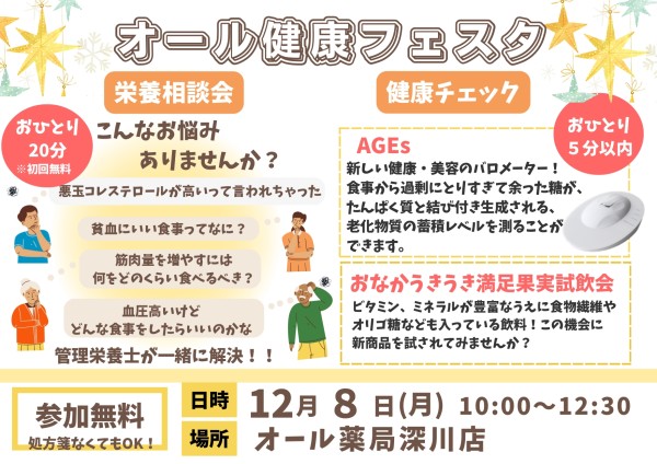 普段オールラボで勤務をしている管理栄養士が1日限定で深川店に来て食事や栄養の相談にお答えします。