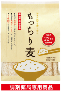 食物繊維高含有の食味に優れる100%もち性大麦を原料として、食べ易く加工し、使い易く包装した精麦製品。生活習慣病予防を心がける幅広い世代の健康志向生活者へ、毎日の主食から無理なく不足気味の食物繊維を補っていただける商品です。
