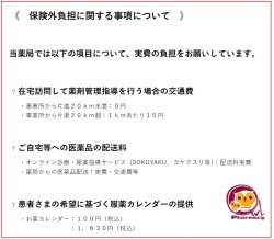 当薬局では以下の項目について、実費の負担をお願いしています。