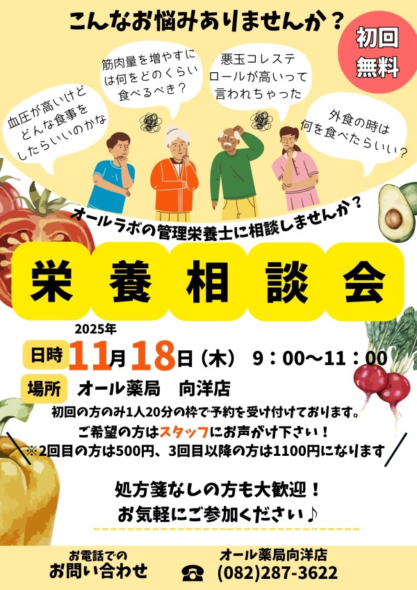 【11/18(火)】栄養相談会+握力大会を開催します。