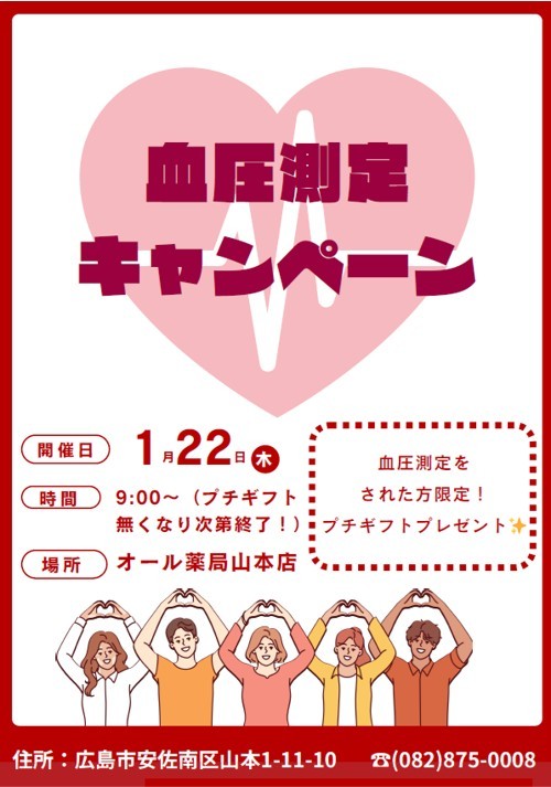 【キャンペーン】1/22 血圧測定キャンペーンを開催します!