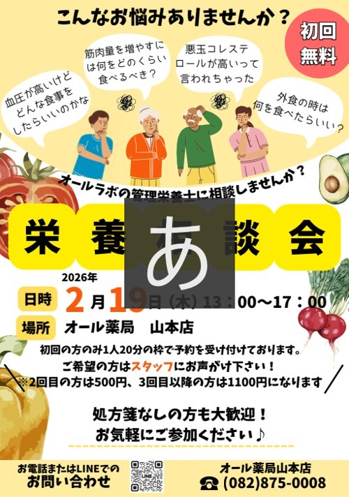 今回山本店では管理栄養士による栄養相談会を開催することになりました。