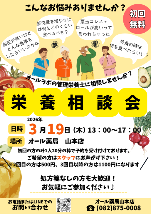 この度山本店では毎回ご好評をいただいている管理栄養士による栄養相談会を開催することになりました。