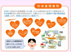 外来での受診から医療機関への入院、さらには退院後の自宅や介護施設等での在宅医療を受ける際の訪問対応まで、お薬のことについて医療や介護の関係施設と連携しながら、患者さんを支えていく薬局です