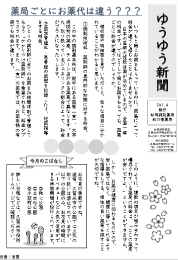 杉の樹薬局、杉岡調剤薬局の事務スタッフが協力し、薬局新聞『ゆうゆう新聞』を作っています。
