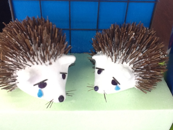 完全に薬学実習生の新たな才能が目覚めました!! (痛そうなハリネズミさんの針はホウキを切って作成)