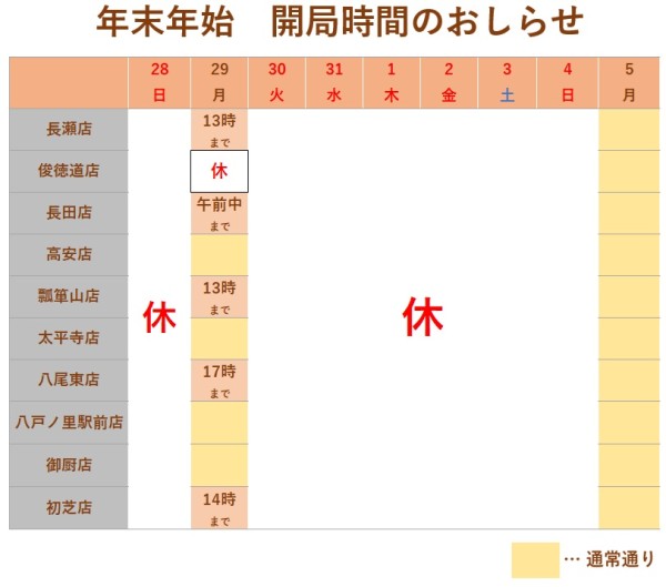 いつもご来局いただきまして誠にありがとうございます。 冬季休暇期間の開局についてご案内申し上げます。 期間中は通常の開局時間と異なる場合もあり何かとご迷惑をお掛け致しますが、 何卒ご理解の程お願い申し上げます。