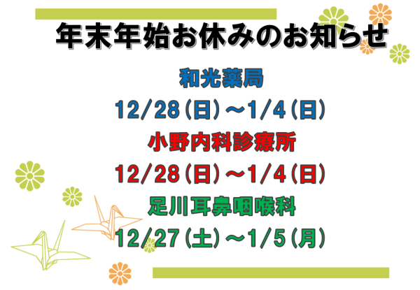 当薬局及び近隣医療機関の年末年始お休みのお知らせ