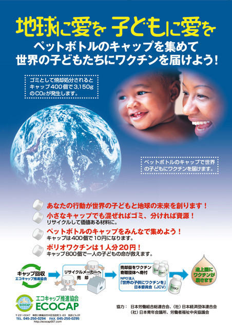 ペットボトルのふた800個で、ポリオワクチン1人分になり、世界の子供の命が救えます。